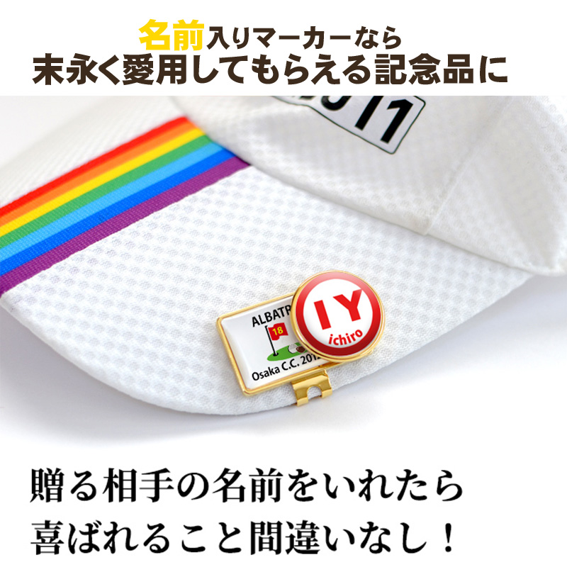 マーカーに個別のイニシャル、クリップにアルバトロス記念が名入れできます。
