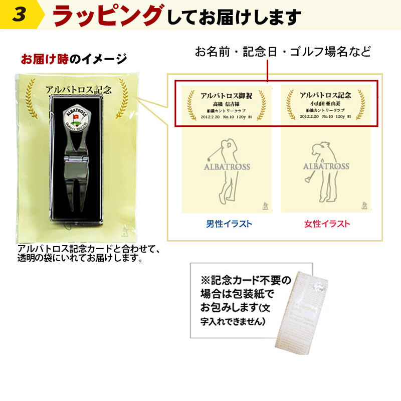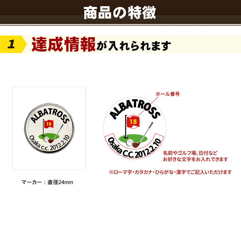 記念すべきアルバトロスの達成情報がはいるマーカーが付いているので、記念品としても、実用品としても喜ばれます。