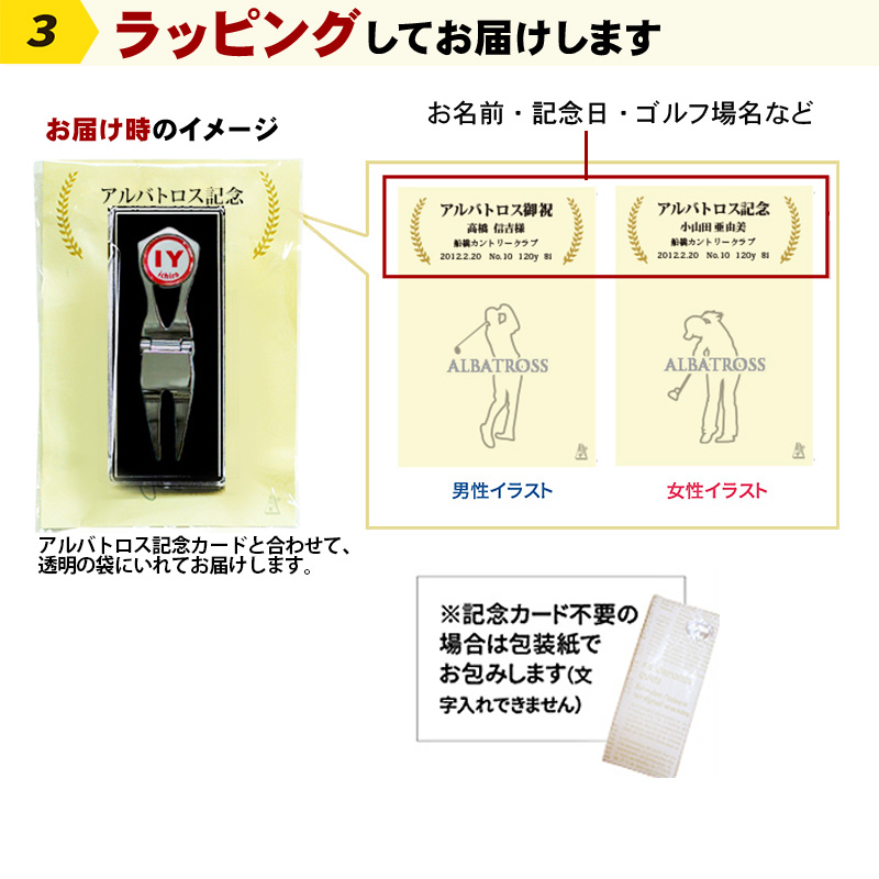 贈られたご友人はご自身の名入りグリーンフォークを見るたびに「おれもいつかはアルバトロスを!」と励みになることでしょう。