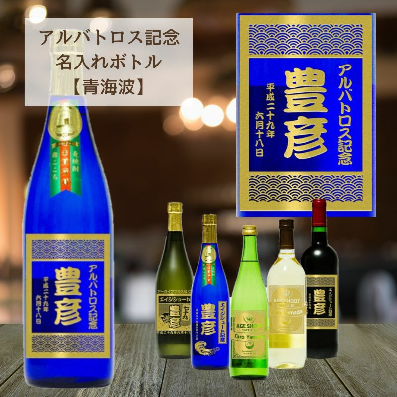 お好きなお酒のボトルに、アルバトロス記念情報のオリジナル刻印。 お部屋に飾っても呑んでも、喜んで頂けること間違いなしです。