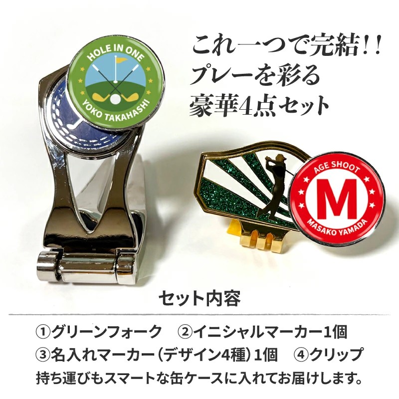 セットに含まれるアイテムは、どれもゴルフシーンで活躍するアクセサリーで、使うたびに贈った相手の喜びを感じてもらえる仕様です。缶ケース付きなので持ち運びも便利で、ラウンドの合間にもさっと取り出せる実用的なギフトセットになっています。