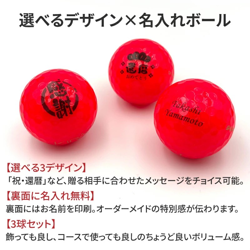 還暦という人生の大きな節目に、ゴルフ好きの方へ贈る特別な赤いゴルフボールの記念ギフトです。