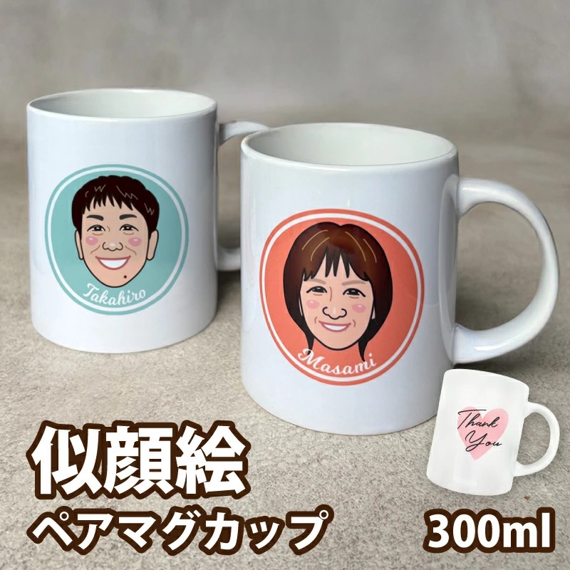 似顔絵 記念日 名入れ ペアマグカップ