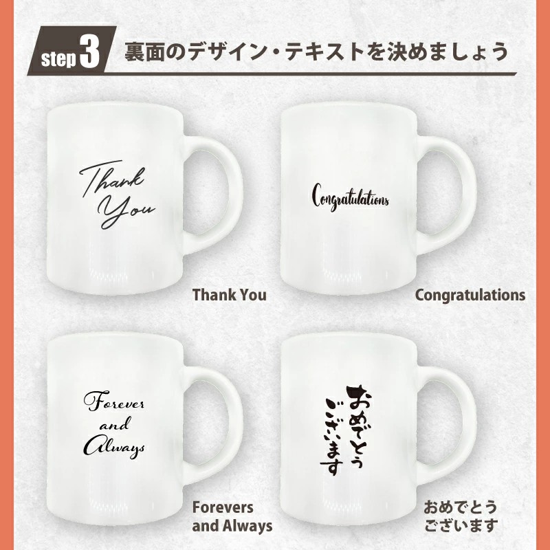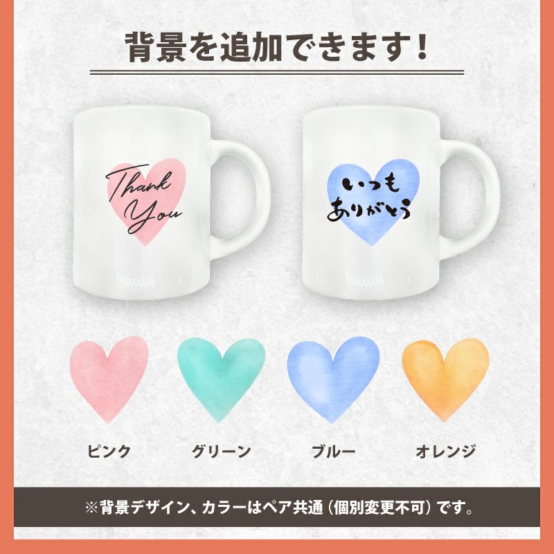 ふたりの大切な記念にペアマグカップを贈りませんか? 名入れ、コメント変更可能なグラスです。