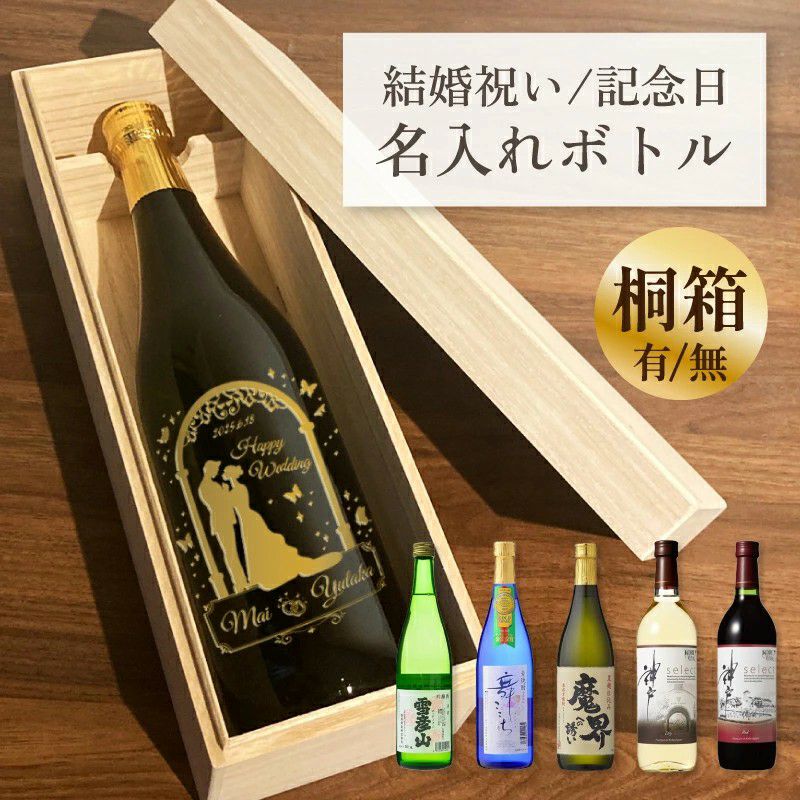 木のぬくもりを感じる桐箱入りで、贈り物としてそのままお渡しいただけます。 ワイン、日本酒、焼酎など多彩な銘柄からお選びいただけるので、お二人の好みに合わせたギフトが可能です。 ✨