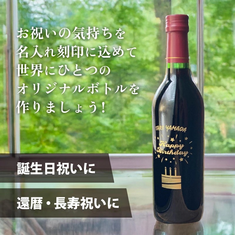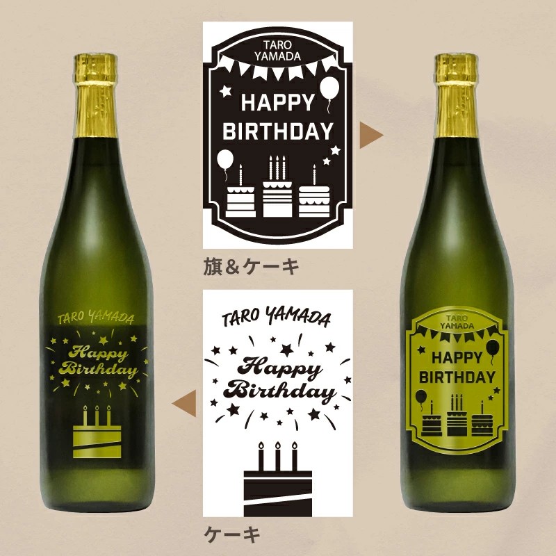 お好きなお酒のボトルに、誕生日のお祝いの気持ちを刻印しました。 お部屋に飾っても呑んでも、喜んで頂けること間違いなしです。