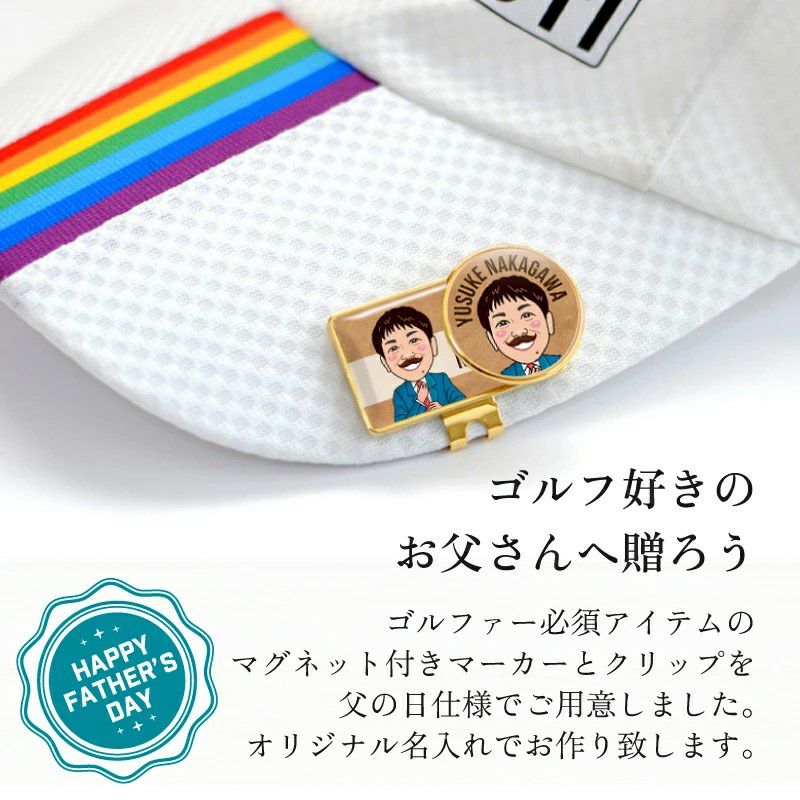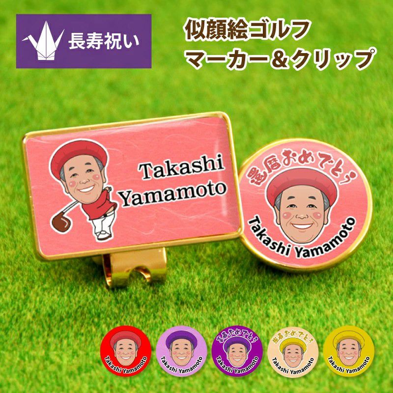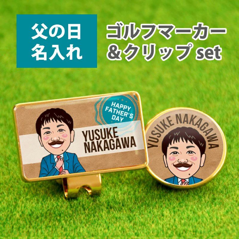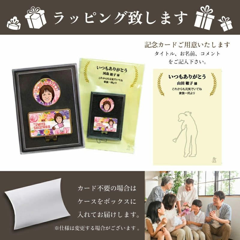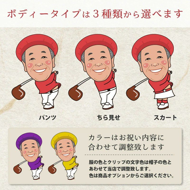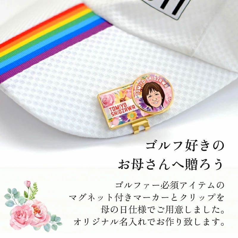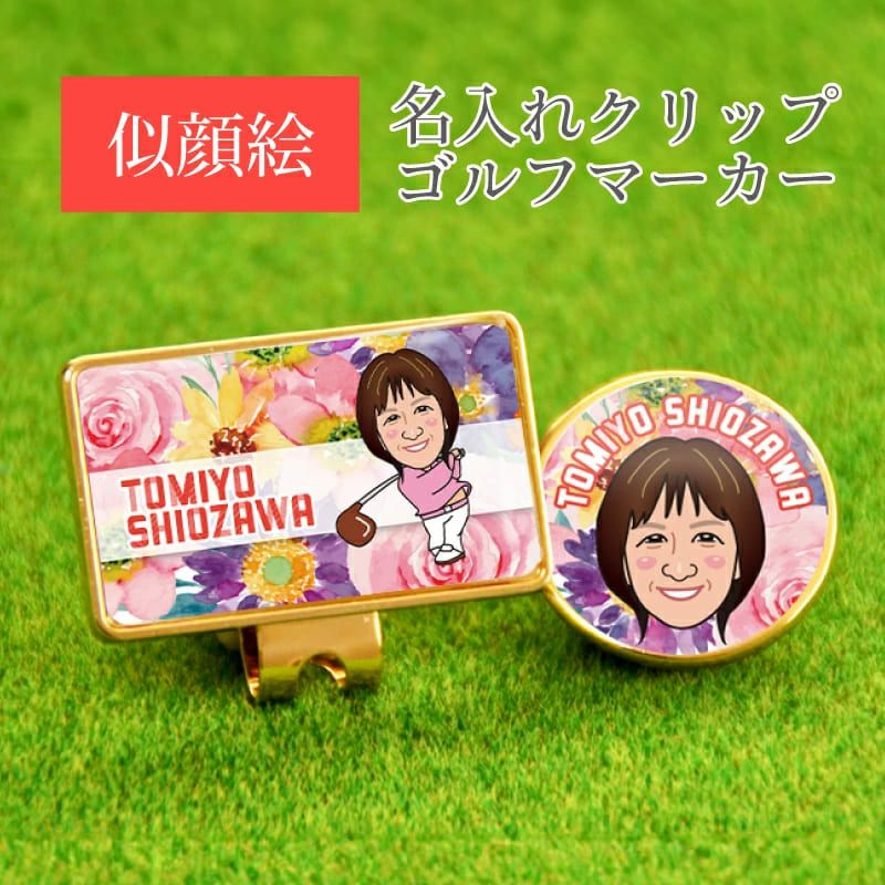 【プリント】花柄 記念日クリップ&似顔絵マーカー(ゴルフギフト)